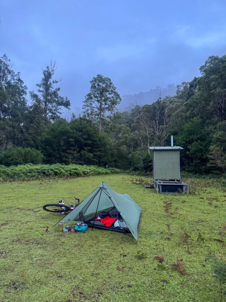 I stayed the night at Griffins Farm while completing a bikepacking loop from Fitzroy Falls, but it is also on the Attack of the Buns route. The trail into the campground, in either direction, involved a steep and loose descent, so good bike handling skills are an added bonus to ensure safe arrival. The campsite is fairly basic, with a relatively new toilet and water access from nearby Yarrunga Creek.